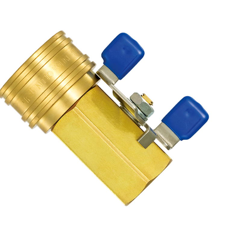 TSP快速接頭和球閥一體化。 連接狀態(tài)(閥門打開時)防止意外脫離的 套環(huán)鎖扣功能裝置。