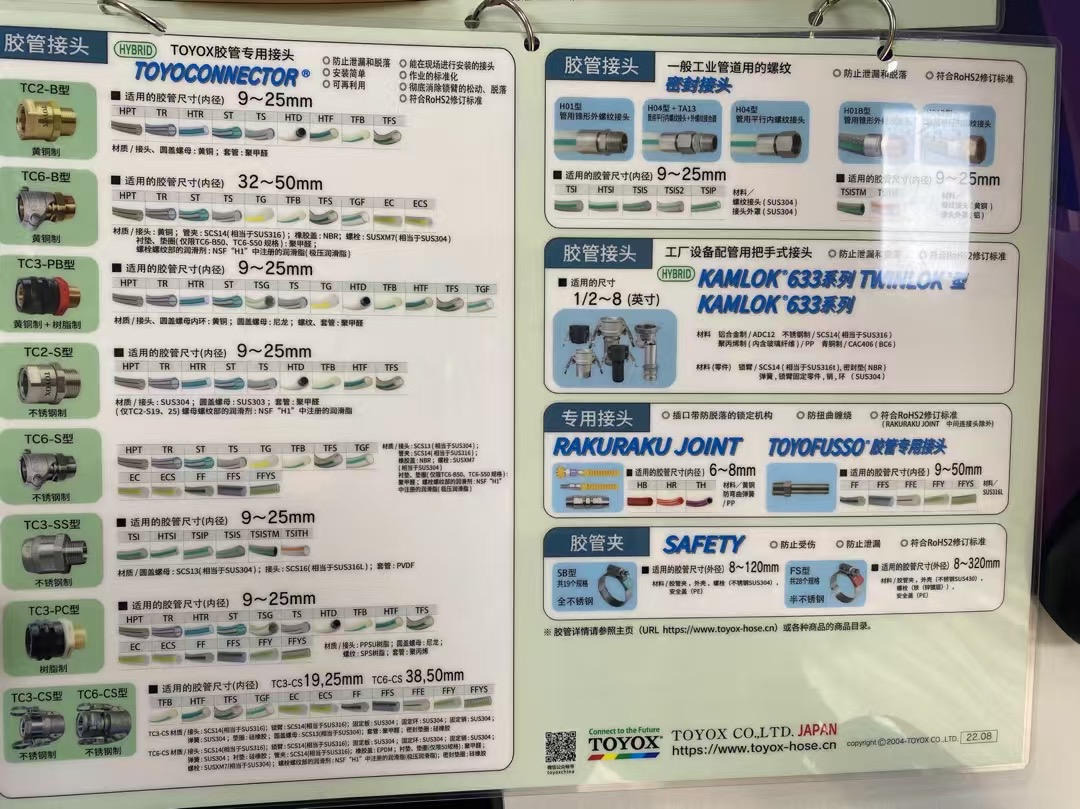提供豐富的膠管與接頭組合,覆蓋耐熱、耐油、耐藥品、食品級(jí)等多種類(lèi)型,適用于流體輸送領(lǐng)域的多樣化需求。