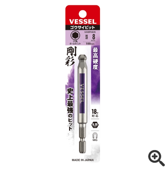 日本VESSEL威威 單頭鋼彩圓形頭內六角批頭GSBP080S